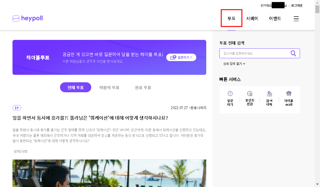 4-1. 헤이폴에서 투표 탭을 클릭해주세요.
