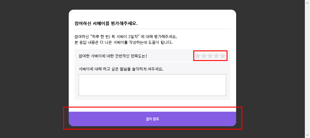 3-5. 다 하셨으면 별점을 주시고 참여 완료를 눌러주세요.