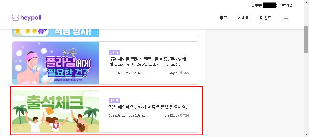 2-2. 매월 하는 출석체크 이벤트를 클릭해주세요.