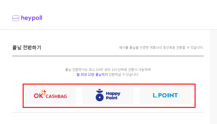 7-1. 헤이폴 메인 화면에서 포인트 전환에 들어가시거나 https://www.heypoll.co.kr/my/point 사이트로 들어가주세요.